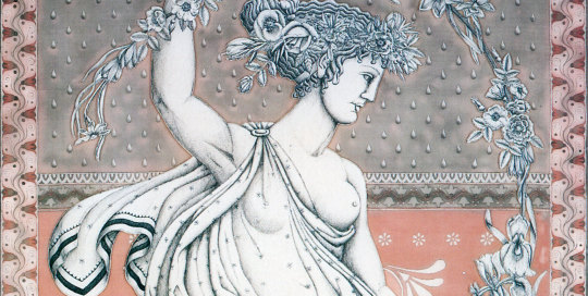 chloris 1997 273x106 cm drawing, painting and bonding on silk private collection photograph: keith paisley Made for the In Arkadia touring exhibition. Chloris, as the goddess of spring, is surrounded by her attributes, as she stands on her altar